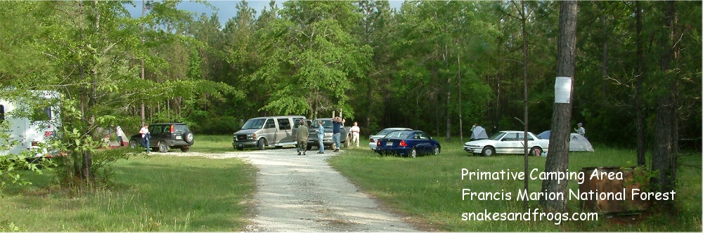 At the camping area, we found that several other groups of attendees had arrived. A number of our members were on the hardy side and planned to campout. As the sun was going down, a large group of us decided to return to Moncks Corner and eat supper. We agreed to rejoin about 8:00 am the next morning. |