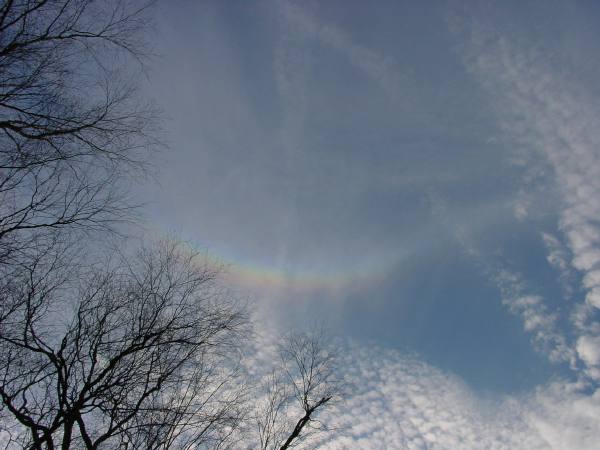 The remainder of the month I did no herping. We have had some nice weather, but I have still not heard any frogs sing. An Opossum has been stealing my cat's food. I found it prowling at my back door one night. I have tried to get closer to photo a few hawks (Red-Tails, Red-Shouldereds, and Marshes), but they would not tolerate my approaches. On Super Bowl Sunday afternoon (1-28-01) there was a clear weather "rainbow" in the sky.