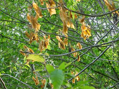 Sunday (05-06-01) was another warm day. An easterly wind blew most all day. I saw one of the female Softshell Turtles basking on the rock in the middle of the pond. A medium-sized River Cooter had joined her. I made pictures of the juvenile Redbelly Water Snake and Black Rat Snake and released them. I walked around the farm, checking coverboards and tin but did not find any herps underneath. I did see an adult Six-Lined Racerunner Lizard in a field. This sighting is encouraging because Racerunners have been scarce locally in the last few years. Eastern Bluebirds had hatchlings in one of the boxes. Nests of Eastern Phoebes had been constructed on ledges in most all the outbuildings; some had hatchlings. In the forest, evidence abounded of the late frost we had a couple of weeks ago. Many trees had their leaves partially burned by the frost. Tulip Trees (also known locally as Yellow Popular) seem to have been hit the hardest. On many of these trees all of the leaves were brown and shriveled. I have seen this same late frost damage to American Beech trees. The leaves are not really dead. In a few more weeks, the trees will pump fluid back into the leaves and the green color will return.
