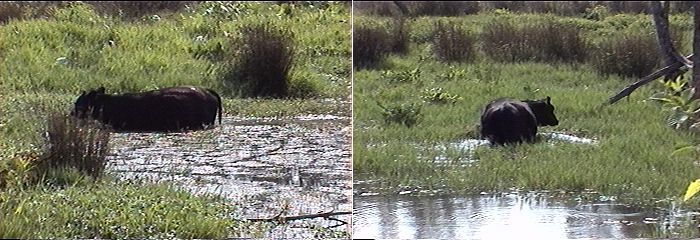 Wednesday (7-25-01), Two big, evil dogs jumped into our Goat pen and killed our little "Brownie". Sue was here but there was nothing she could do. They later took down two calves at a farm down the road. The dogs were then picked up by the owners and turned over to Animal Control with a signed order to be destroyed. Good. I'm just glad they didn't choose to attack a child. That evening I went out to the pond and "around the block". Just a Hercules Beetle (female) to show for my efforts.