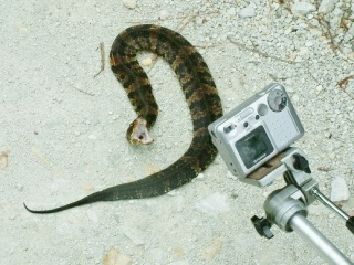 | Sunday (4-6-03), The morning brought more field time. We found two Cottonmouths, and heard various frogs (Southern Cricket Frogs, Carpenter Frogs). |   |