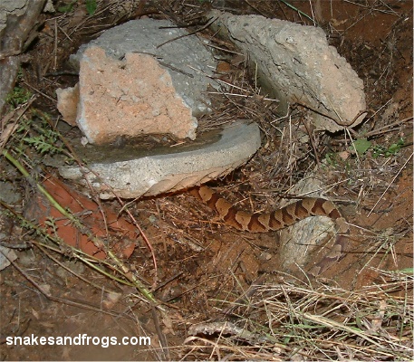 Monday (9-27-04), I was off work, another hurricane/tropical storm (Jeanne) was approaching. A perfect time to go herping! I reasoned that terrestrial, diurnal snakes would be hunkered down, under cover (tin/debris). I also reasoned that the under-ground snakes would be flooded out of their burrows and may be under tin/debris also. I could hunt in a hat/poncho, and bring a change of clothes/shoes. It might work. I needed to go to an area with lots of stuff to flip/turn. I called Tony Mills in Aiken, and he was game to spend some time outside in the storm, herping. I drove down, we met and hit the woods immediately. We found Slimy Salamanders and Southern Toads, Skinks, Anoles, Fence Lizards and Racerunners. We also found snakes. A Corn Snake and three Black Racers, all under coverboards/tin. My theory proving sound. We then ventured into nearby Barnwell County, to a spot of private property, and hit a large stack of tin. We peeled back the sheets one-by-one, and there, near the bottom of the stack was my BARNWELL COUNTY SNAKE! A Hognose! Patterned! Dare I dream it to be a Southern? I grabbed it up (it musked and pooped on me instantly) and checked. Eastern Hognose! Oh well, it was pretty, I have not caught a Hognose this year, and best of all, it was in BARNWELL COUNTY! Tony had to get back to work after that, and I rambled on alone. Five minutes later I found a DOR Canebrake Rattler. It was an adult, in good condition, so I salvaged it for a specimen. Here and there I go. I found another Black Racer, out crawling in wind and rain. I also found more lizards and even some Tiger Beetles (Cicindela tranquebarica, punctulata, and scutellaris). More wind, more rain, more driving. It turned out to be a 260 mile day but well worth it, because now I can say, “I have caught a snake in EVERY county in the state of South Carolina!”