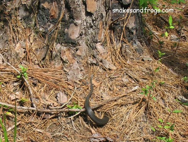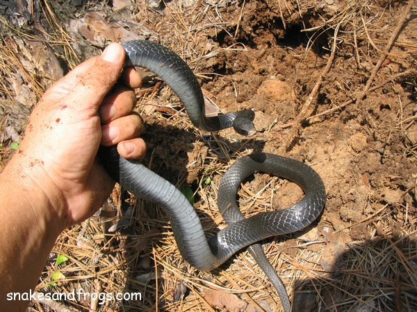 On the last day of the month, Win came upon the tail of a Black Racer protruding from a hole at the foot of a Pine tree. The snake