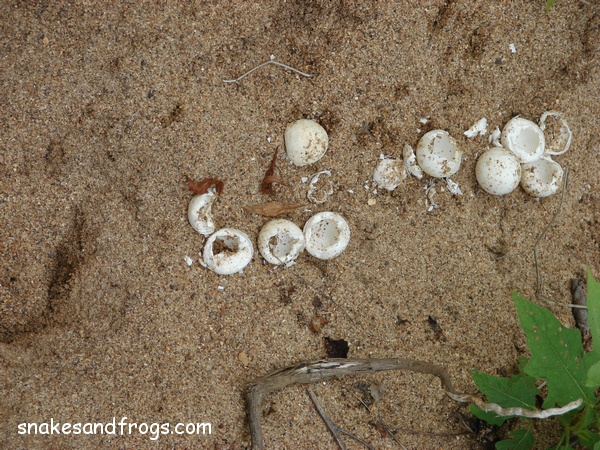 Cooters, and a Musk Turtle. In a sand deposit beside the large creek, I found a turtle nest that had been raided and the eggs eaten.