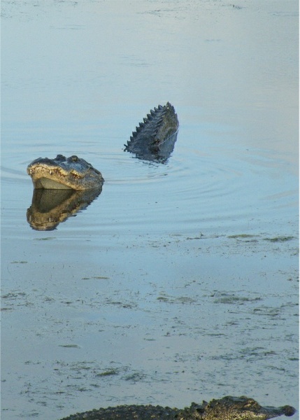 Nearing a "natural" enclosure for Alligators, I could hear a bull gator bellowing and vibrating the water.