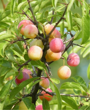 to pick any more berries. The wild plums (below) are ripening. I think I will pick them instead.