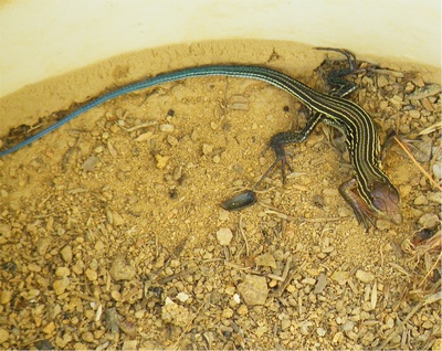 The temperatures in early August topped 100 F on several days. Baby Five-lined Skinks and Six-lined Racerunners (right)