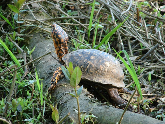 emerging antlers on the shore. Near the boat ramp, he saw an old Eastern Box Turtle moving about.