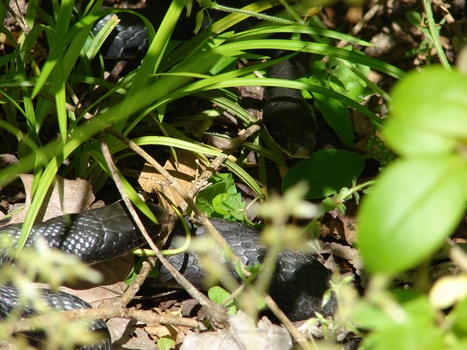Snake protruding from its mouth. A few minutes later he saw a smaller Black Racer approach and travel a circuit around the first snake and