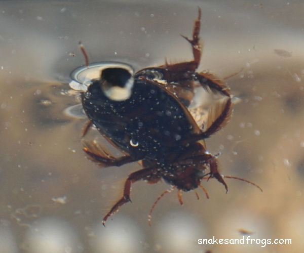 which had a good population of Red-spotted Newts before the droughts. The first time I checked the trap, there was a Predacious Diving