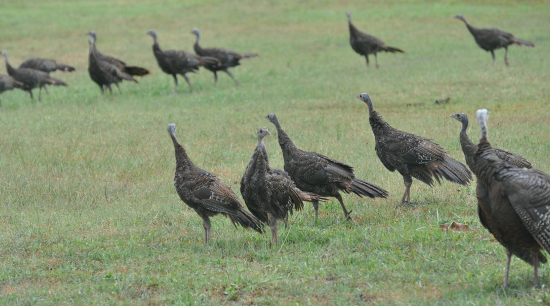 in the river. It was a grand summer activity. Wild Turkeys visited our yard most every day (below).