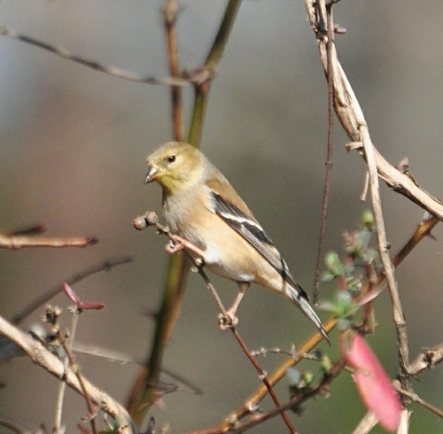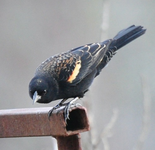 closer and closer scrubs and fence posts; then it darted over and grabbed a couple of seeds and flew away.