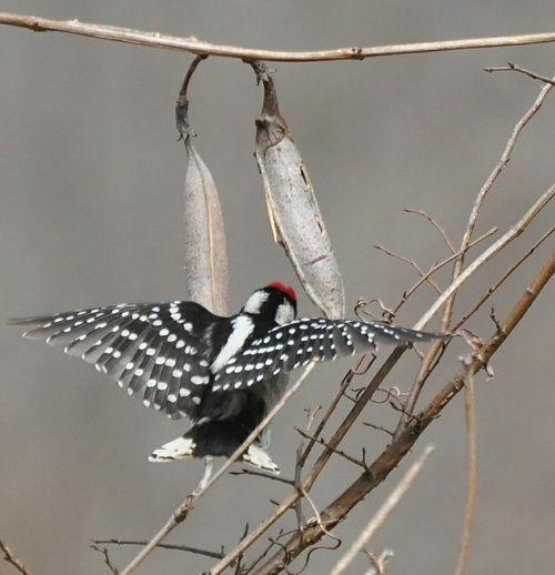station and eat seeds. The woodpecker approached like a dis-interested avian. It moved about, lighting on