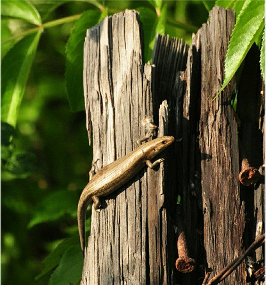 I saw a couple of unusual sights during the month. I found an amelanistic Five-lined Skink on a fence post at the