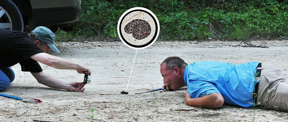 Win and another group member lay on the ground. Unusual photographic angles can be used to make snake specimens