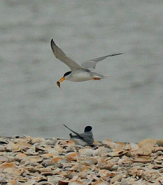fish being swept by the incoming tide, and Least Terns below the Ravenel Bridge.