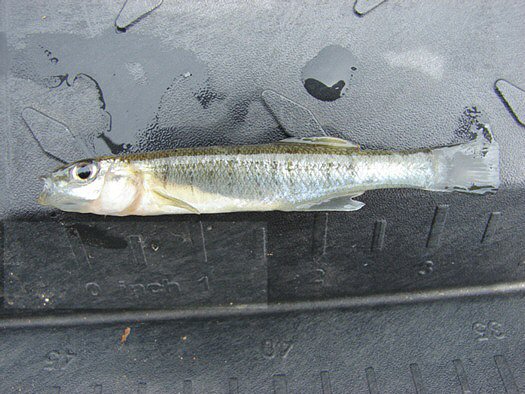 dead or dying Banded Killifish in Lake Thurmond. Killifish are small and minnow-like. These particular fish were