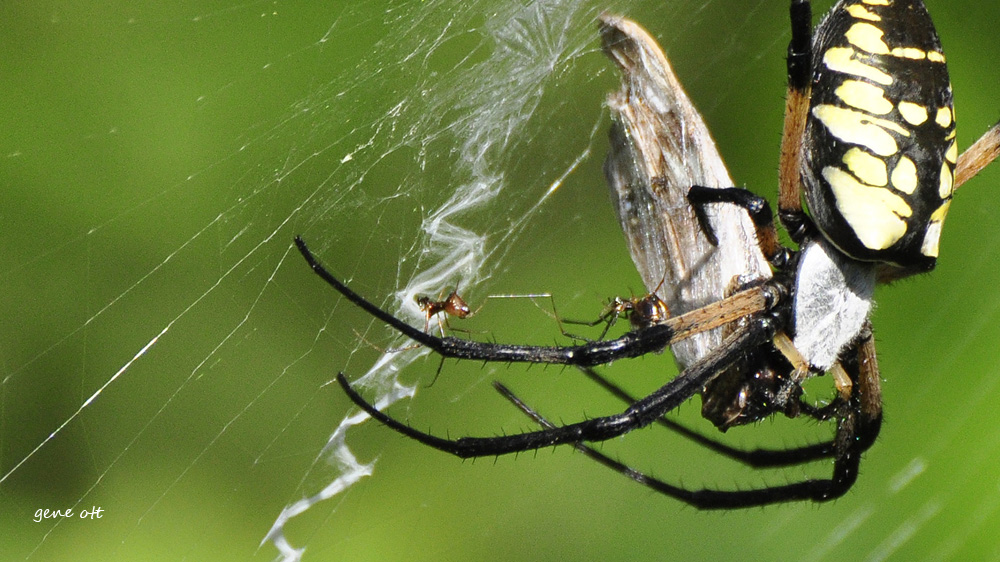 Spiders and fall caterpillars were abundant. I found a large Yellow Garden Spider with some tiny cousins visiting. I have not yet identified their species, perhaps one of the kleptoparasites.