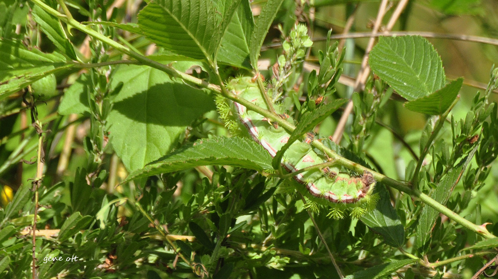 I found a new-to-me caterpillar of the Io Moth. It looks like it has ferns growing on its back. The literature says these spines will inflict painful stings.