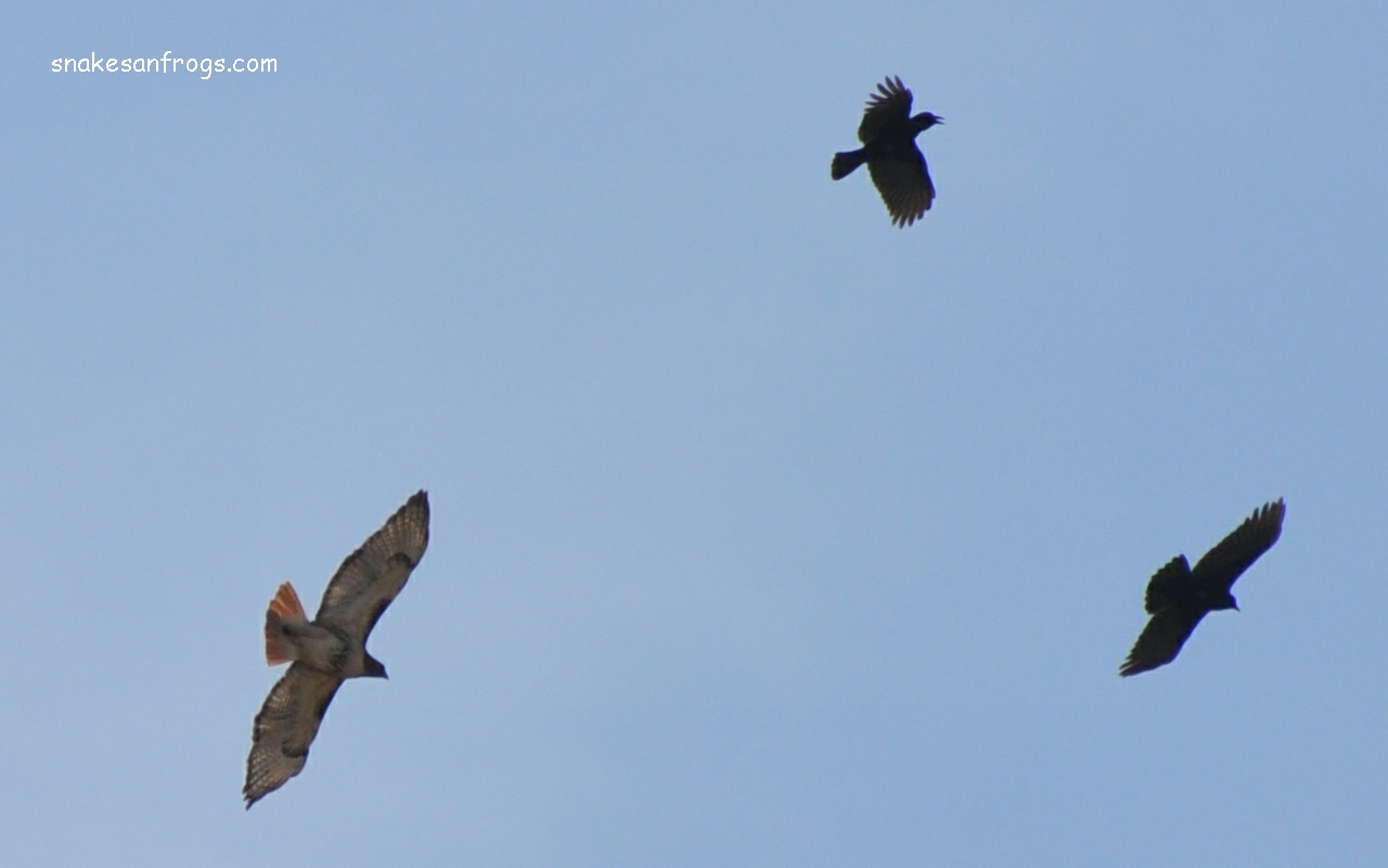 adult being harrassed by crows