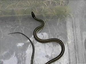 This episode gave me some concern. I did not want anything to happen to the Cornsnake since I had not found one in so long a time and I currently did not have pictures of a juvenile Cornsnake on my website. Because the Garter Snake was considerably larger than the Cornsnake, I envisioned it making a meal of the baby Cornsnake. I transferred the Garter Snake to a collecting bag.