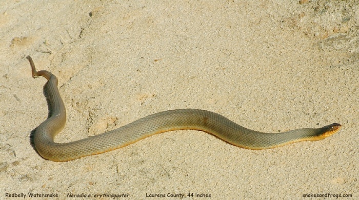 Nerodia erythrogaster erythrogaster is called the Redbelly Water Snake. Its belly is usually more orange than red. It is the
