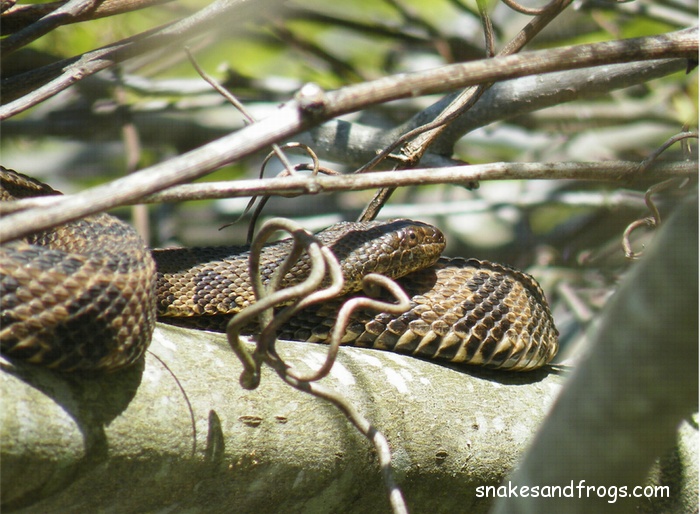 as venomous Cottonmouth Snakes. Browns like to bask on limbs higher above the water than most other water snakes.