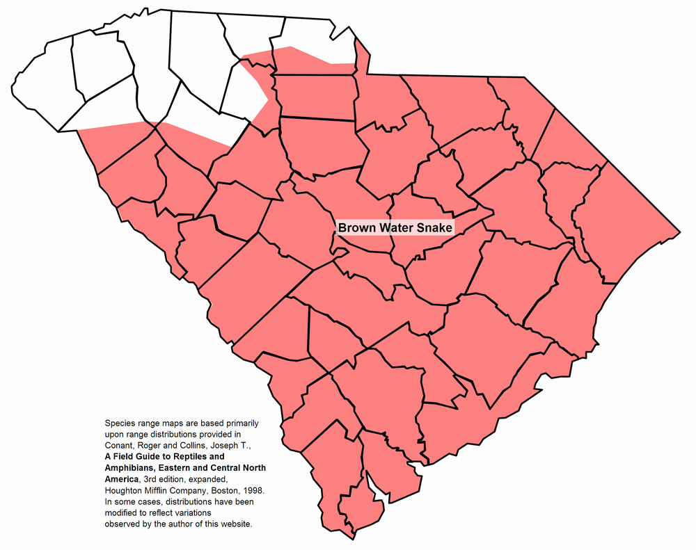In recent decades, Brown Water Snakes have extended their range into the Piedmont of South Carolina.